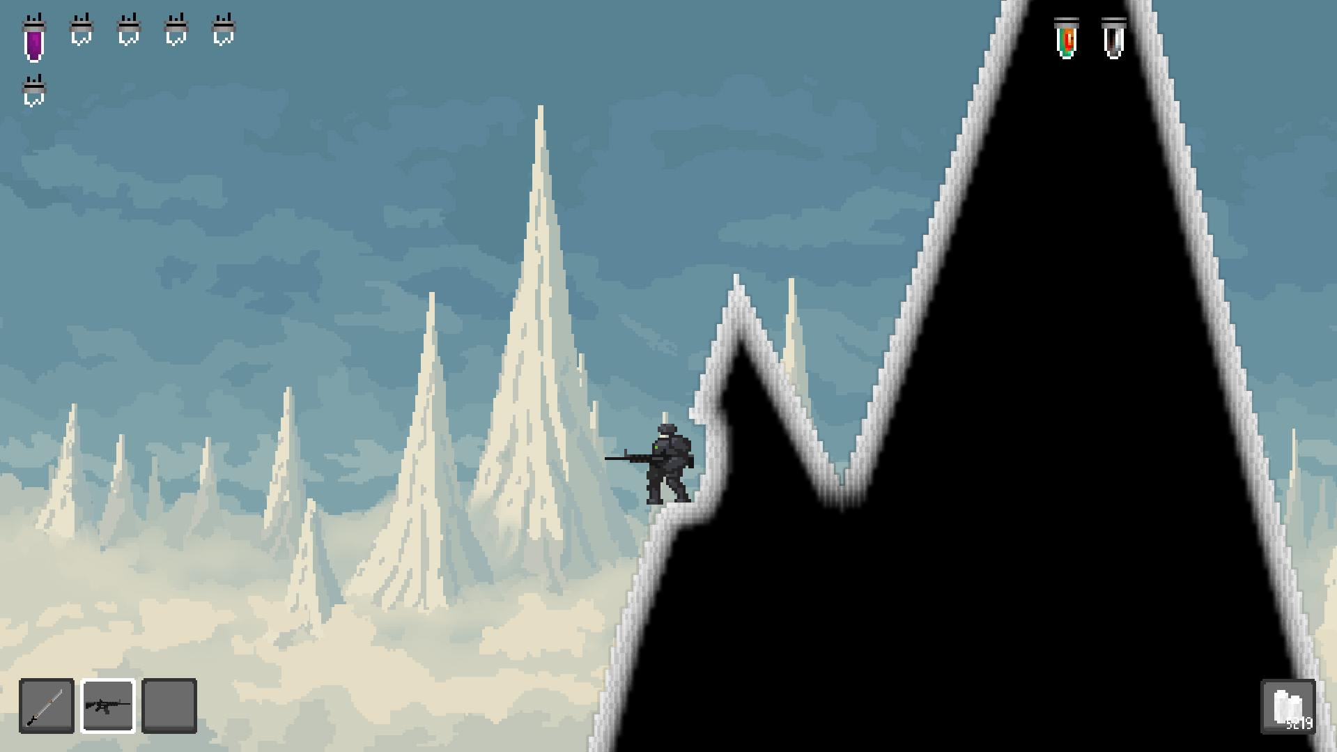 You wake up as a forgotten war machine on a fully-destructible alien planet in this 2D action roguelike sandbox. Travel through unique biomes, quickly gather various elements, and combine them in a one-plus-one becomes one-entirely-new-thing crafting system to arm yourself as you figure out what happened to the desolate, war-torn world